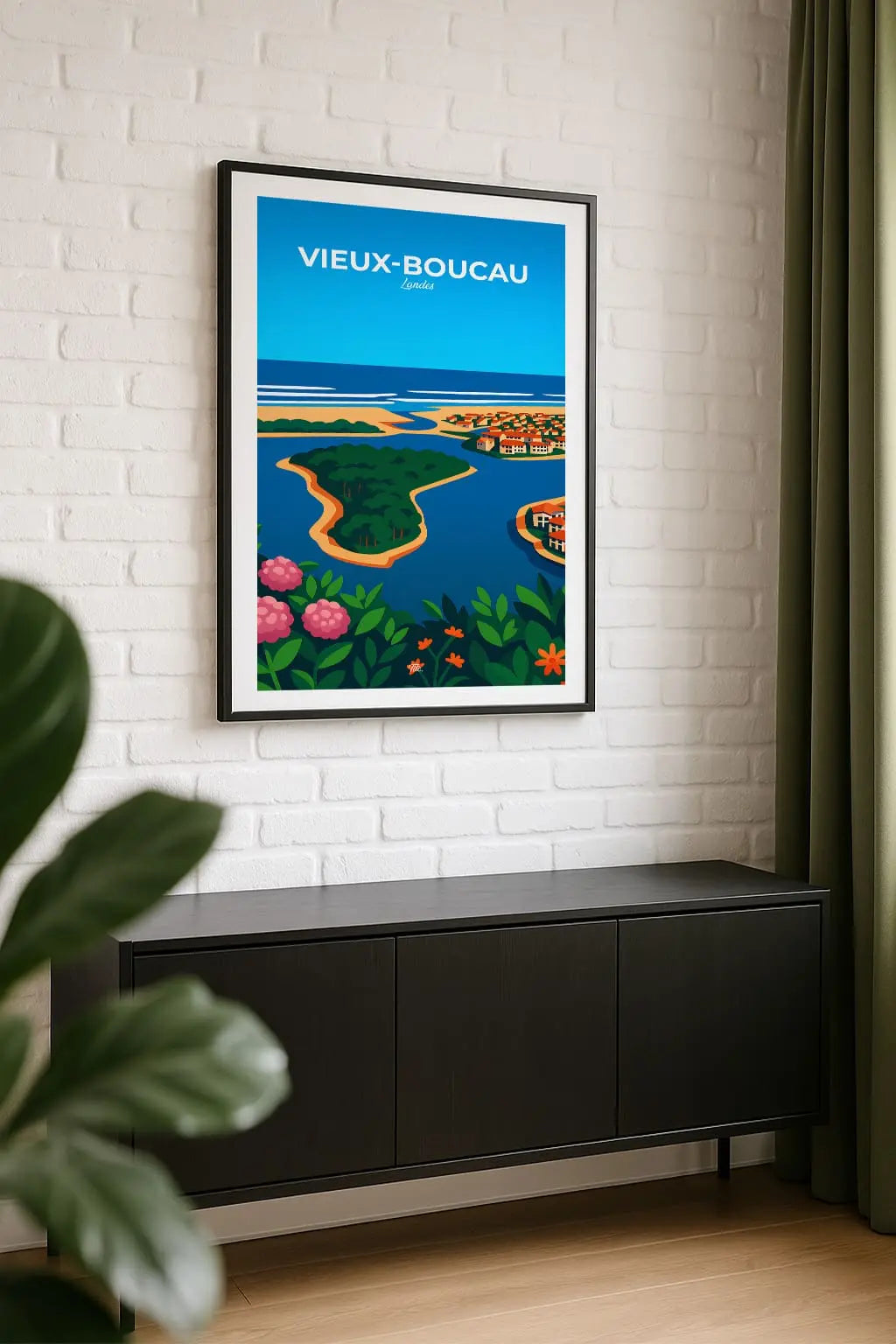 Vieux-Boucau-les-Bains, joyau des Landes, s’étire entre lac marin, plages dorées et forêts de pins. Entre vagues de l’Atlantique, marchés animés et ambiance conviviale, la ville respire nature, douceur et art de vivre océanique. Accrochée sur un mur, cette affiche insuffle une bouffée d’évasion et de souvenirs. Offrez-vous un fragment de ce lieu, ou partagez-le en cadeau à une personne qui porte cet endroit dans son cœur.